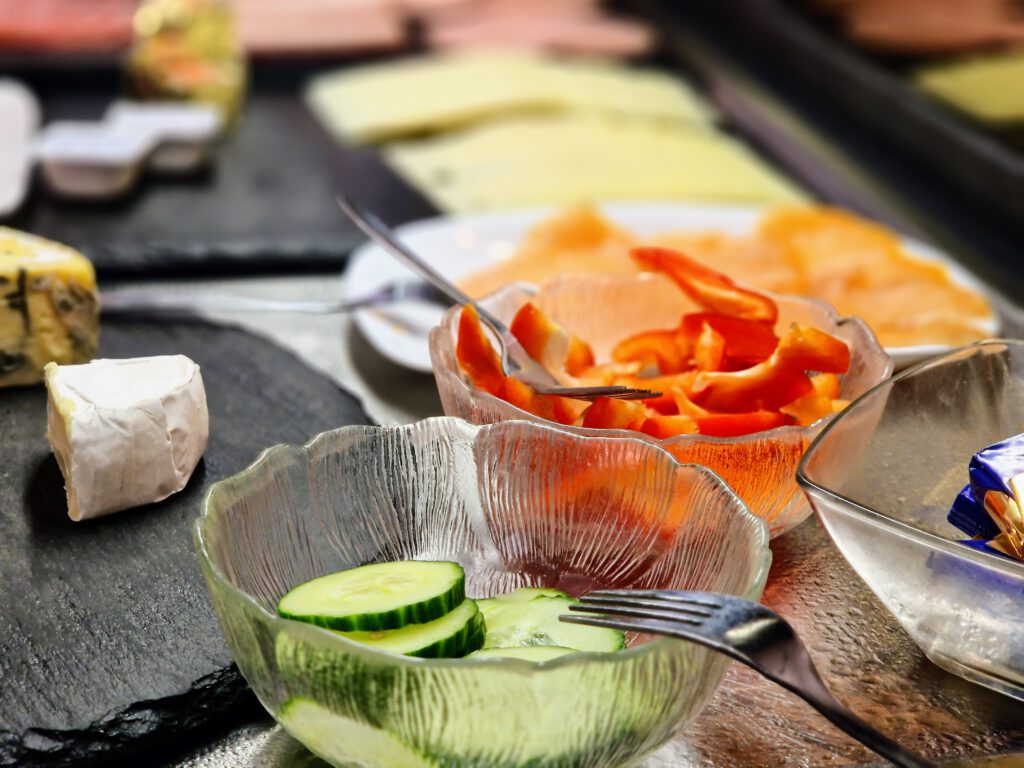 Das Buffet ist eine Feier der Geschmäcker und Aromen, die die Region zu bieten hat. Von frisch gebackenem Brot und duftenden Brötchen bis hin zu einer Auswahl an Käse- und Wurstspezialitäten – jedes Element wurde sorgfältig ausgewählt, um höchste Qualität und Vielfalt zu garantieren. Knuspriges Müsli, frisches Obst und eine Palette an Marmeladen und Aufstrichen laden dazu ein, den Tag mit einem gesunden und schmackhaften Frühstück zu beginnen.